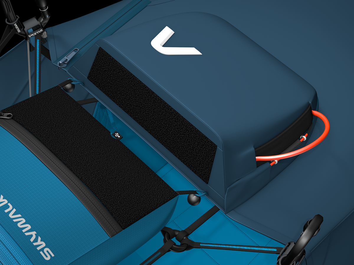 The cockpit pouch not only offers additional velcro for attaching more flight instruments, but also features a clever storage compartment with a cable outlet, ideal for your power bank. Additionally, there’s another compartment for smaller items like snacks, so you have everything you need during your flight at hand and well-organized. For secure stowing, it can be quickly detached.